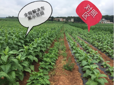 圖為 煙草試驗(yàn)田使用蝦肽肥改良土壤后種植效果對(duì)比圖