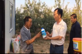 圖為 我司總經(jīng)理王榮輝為張老送來(lái)蝦肽系列肥料