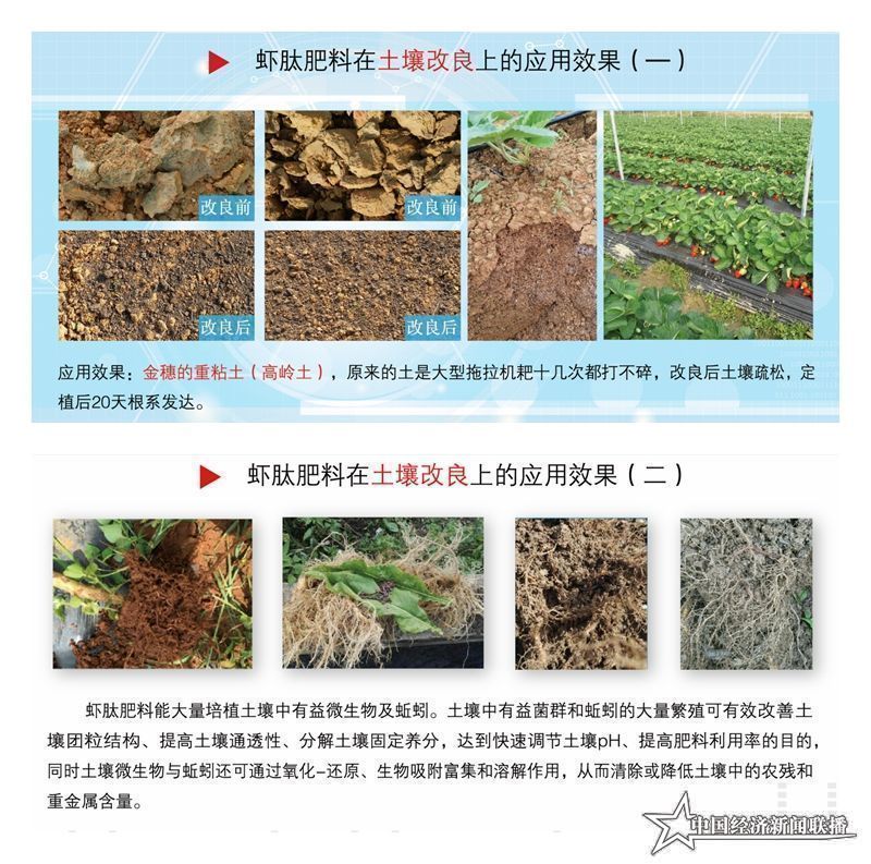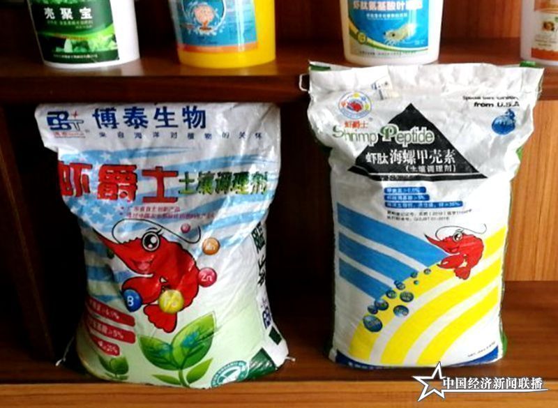 詹少波大體介紹了公司的情況之后,指著貨架上一款名為“蝦肽海螺甲殼素”的產(chǎn)品,對記者說,這就是公司現(xiàn)在生產(chǎn)的新一代產(chǎn)品土壤調(diào)理劑,是公司“健康土壤培育工程技術研究院”的最新研究成果,利用新一代的萃取技術從牡蠣殼、海螺殼中提取含海洋甲殼素、鈣、鎂、硼、鋅、鐵等養(yǎng)分,并添加蝦肽氨基酸進行絡合,生產(chǎn)出高活性的土壤調(diào)理劑產(chǎn)品。它的原理就是通過給土壤補充活性有機螯合物,如螯合鈣,螯合鐵,螯合鎂等。該土壤調(diào)理劑能快速調(diào)整土壤ph值和土壤團粒結構,增大了土壤環(huán)境的通透性能,為各種有益微生物生長繁殖提供了條件。通過監(jiān)測,土壤有益微生物量大幅提升,同時也促進蚯蚓的大量繁殖生長,以此來清潔土壤,平衡土壤微生態(tài),恢復土壤活力,從根源上解決我國土壤問題,利用率高,快速高效。
